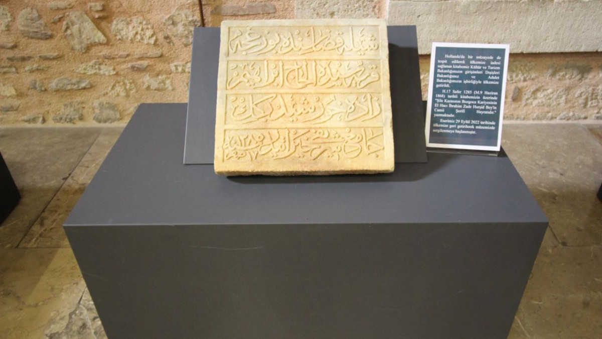Osmanlı dönemine tarihli bir taşınmaza ait bu kitabenin, 30 Eylül 2022'de ülkeye iadesi sağlandı. Kitabe, İstanbul Türk ve İslam Eserleri Müzesi’nde sergilenmeye başlandı.