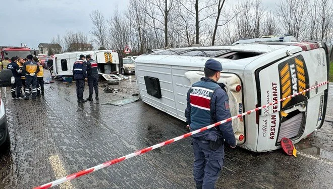 Edinilen bilgiye göre, aynı yönde seyreden Necmi G. (67) idaresindeki 74 M 0203 plakalı ve Erol A. (50) yönetimindeki 74 M 0469 plakalı işçi servisleri, henüz bilinmeyen bir nedenle çarpıştı. Çarpışmanın etkisiyle her iki araç da devrildi.