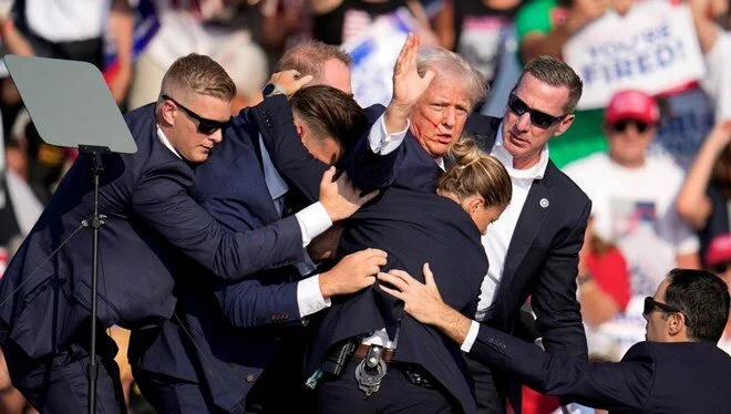 5 Kasım'daki başkanlık seçimlerindeki aday adaylarından eski Başkan Trump, Pennsylvania'daki mitinginde konuştuğu sırada kürsüde silahlı saldırıya uğradı.