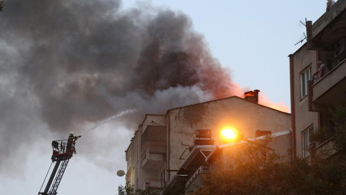 İtfaiye ekiplerinin müdahalesiyle söndürülen yangın nedeniyle çatıda hasar oluştu.