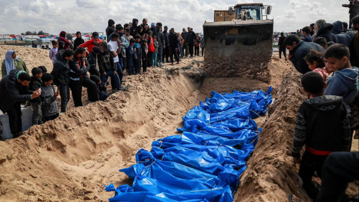 Paylaşımda İsrail'in Gazze'ye saldırılarında hayatını kaybeden çocuklar, kefenlenmiş cenazeleri taşıyan Gazzeliler ve toplu mezar görselleri yer aldı.