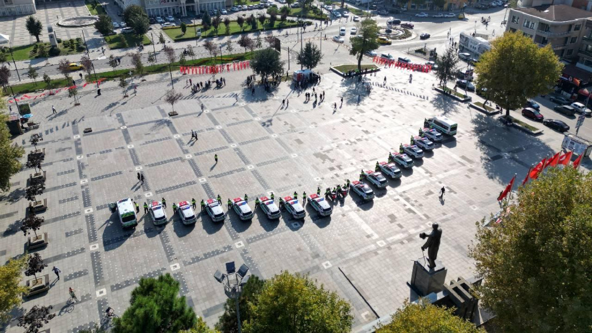 Anıtpark Meydanı'nda düzenlenen törende Vali Selçuk Aslan, İl Jandarma Komutanlığı envanterine katılan 14 cip, 2 minibüs ve 2 motosikletten oluşan yeni araçları inceledi.