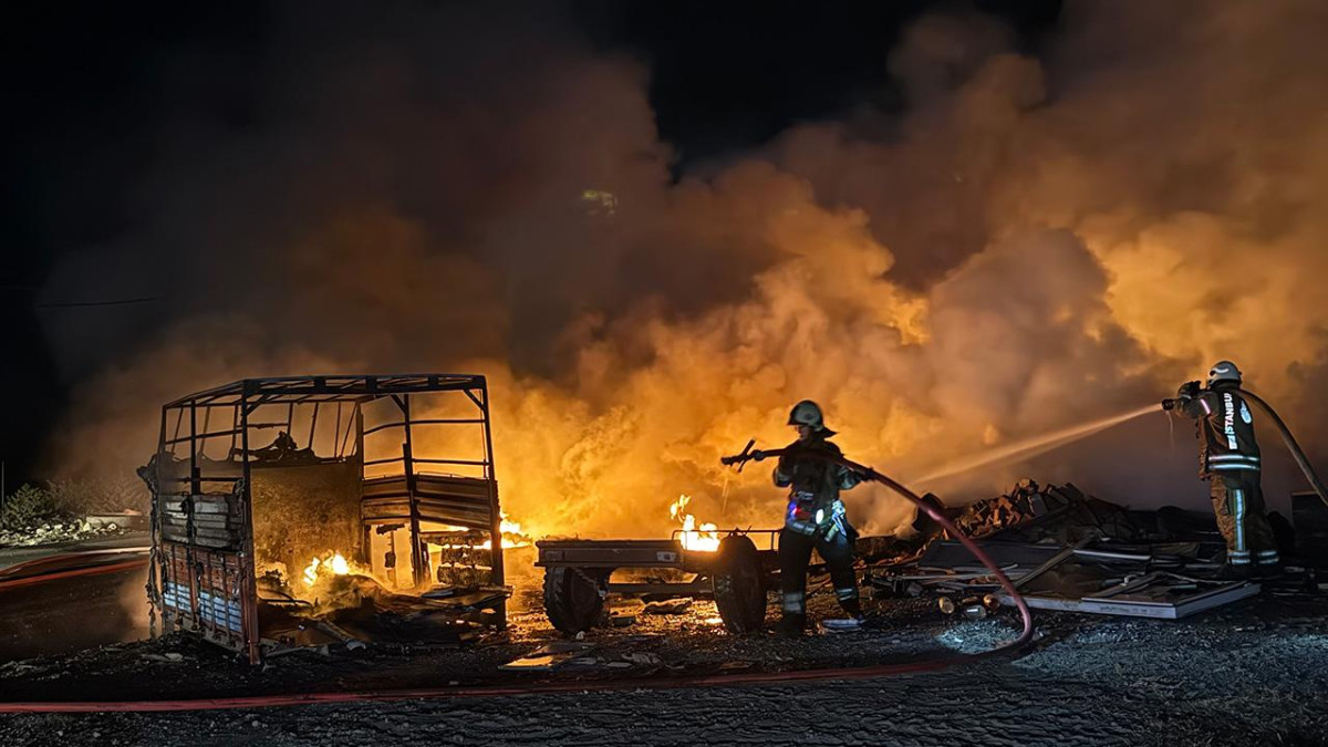 Ağaçlı Mahallesi Ağaçlı Köy Yolu üzerinde bulunan lastik deposunda henüz belirlenemeyen bir nedenle yangın çıktı.