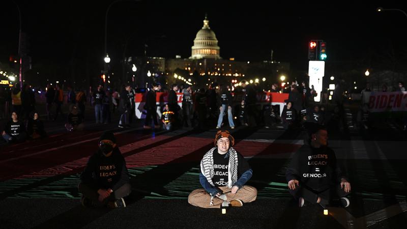 ABD'nin başkenti Washington'da toplanan Filistin yanlısı yüzlerce gösterici, Başkan Joe Biden'ın Kongre'ye giderken kullandığı Pennsylvania Caddesi'ni trafiğe kapatarak Gazze'de acil ateşkes talebinde bulundu.