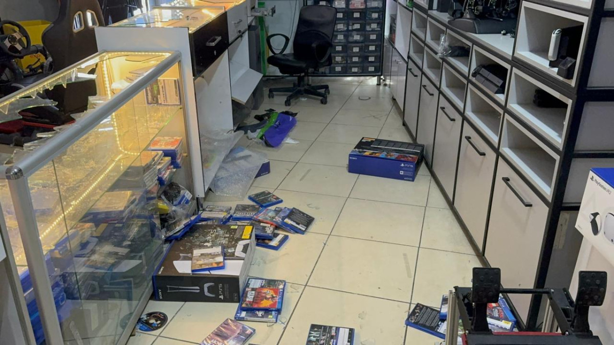 3 şüpheli, oyun konsolu ve aksesuarları satan bir iş yerine geldi. Kepengi ve işyerinin camlarını kırıp içeri giren hırsızlar, içerideki oyun konsolu, oyun cd'leri ve aksesuarları yanlarında getirdikleri çuvallara doldurdu.