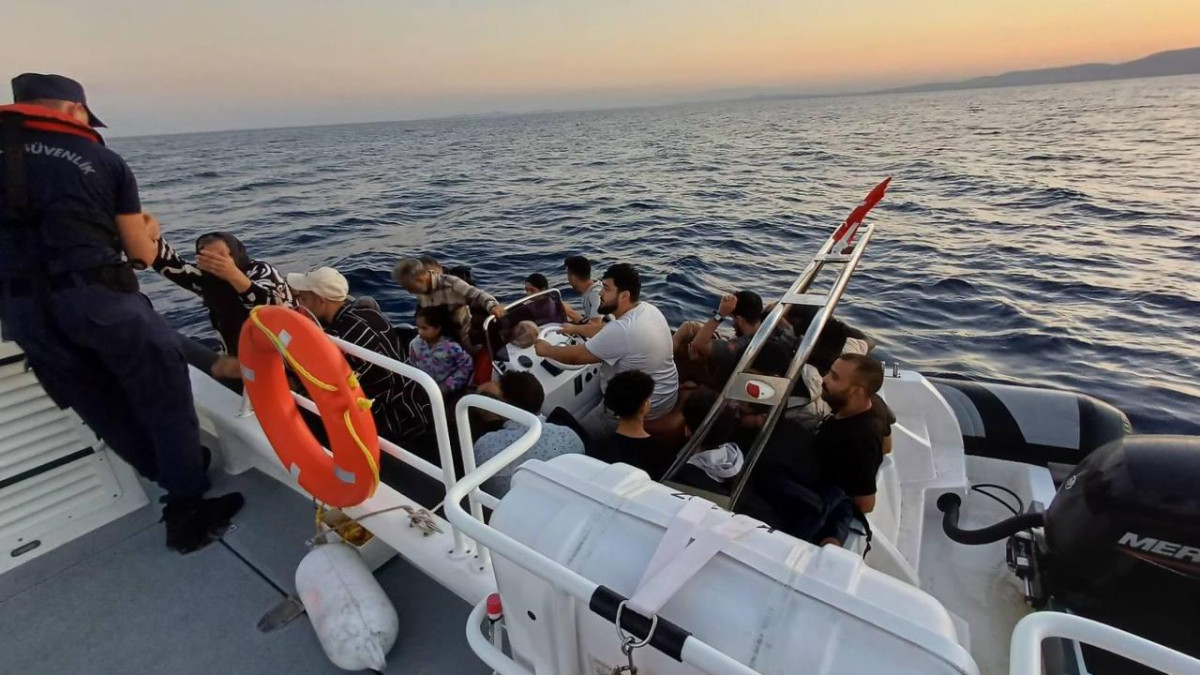 Sahil Güvenlik ekipleri tarafından durdurulan hareketli lastik botlardaki 8'i çocuk 81 düzensiz göçmen yakalandı.