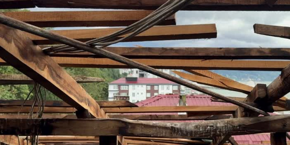 Rize'nin Çayeli ilçesinde hortum bir binanın çatısını uçurdu.