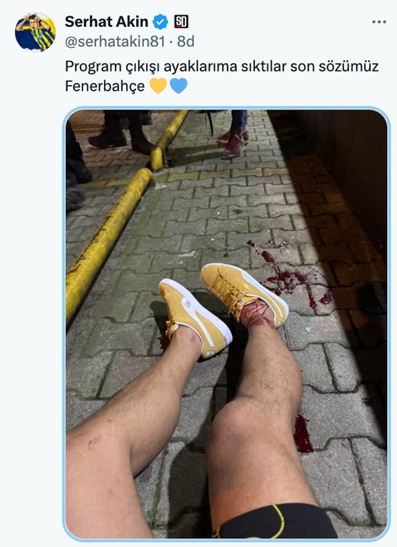 Serhat Akın " "Program çıkışı ayağıma sıktılar. Son sözüm Fenerbahçe." sözleriyle vurulan ayağını paylaştı.