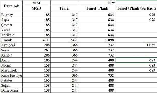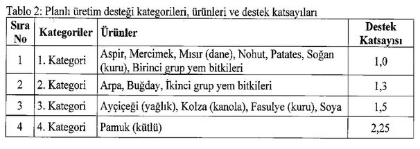 Planlı üretim kapsamında ürünlerin destek katsayısı değişiyor. Söz konusu destek katsayılarında sertifkalı tohum kullanımı, yeraltı su kısıtı, iyi tarım ve organik tarım uygulamaları, ürünlerin lisanslı depolarda muhafazası gibi faktörler de baz alındığı için destekleme miktarları üreticiler arasında söz konusu etkenlere göre farklılık gösterecek.