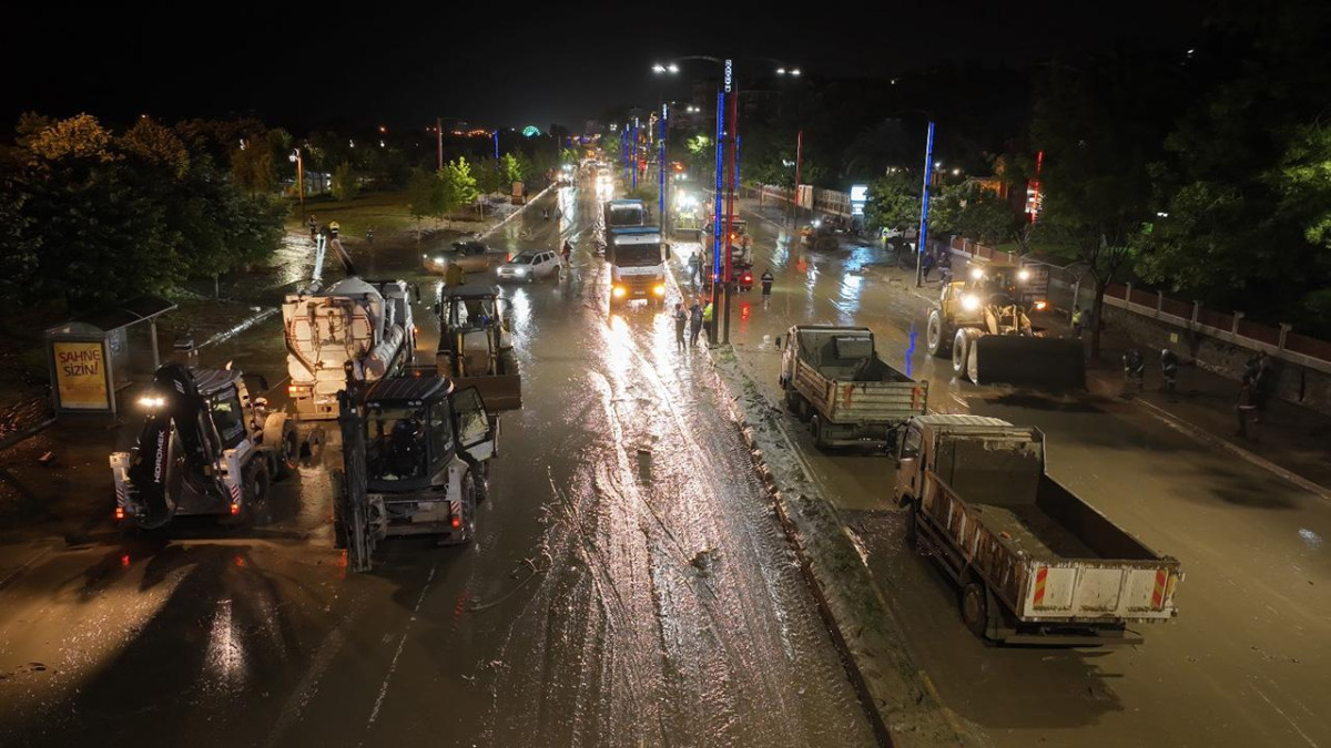 "Yoğun yağış nedeniyle şehrimizde bazı olumsuzluklarla karşılaştık. İlk ihbarı almamızın ardından Sayın Valimizin riyasetinde, Genel Sekreterimiz ve ilgili birimlerimizin koordinasyonunda bütün ekiplerimizle birlikte bu riski en aza indirmek için yoğun çalışma içerisine girdik. Trabzon Büyükşehir Belediyesi olarak 165 araç ve 548 mesai arkadaşımızla birlikte sahadayız. Vatandaşlarımızın mağduriyetini gidermek, yolları ulaşıma açmak ve sel riskini ortadan kaldırmak için gece gündüz çalışıyoruz. Pazarkapı ve Beşirli bölgelerinde büyük ölçüde ilerleme sağladık. 3 No'lu Erdoğdu, İnönü, Bahçecik gibi riskli mahallelerde de ekiplerimiz eş zamanlı olarak müdahalelerini sürdürüyor."